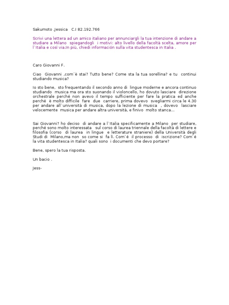 Lettera a un amico | Esercizi di Italiano | Docsity